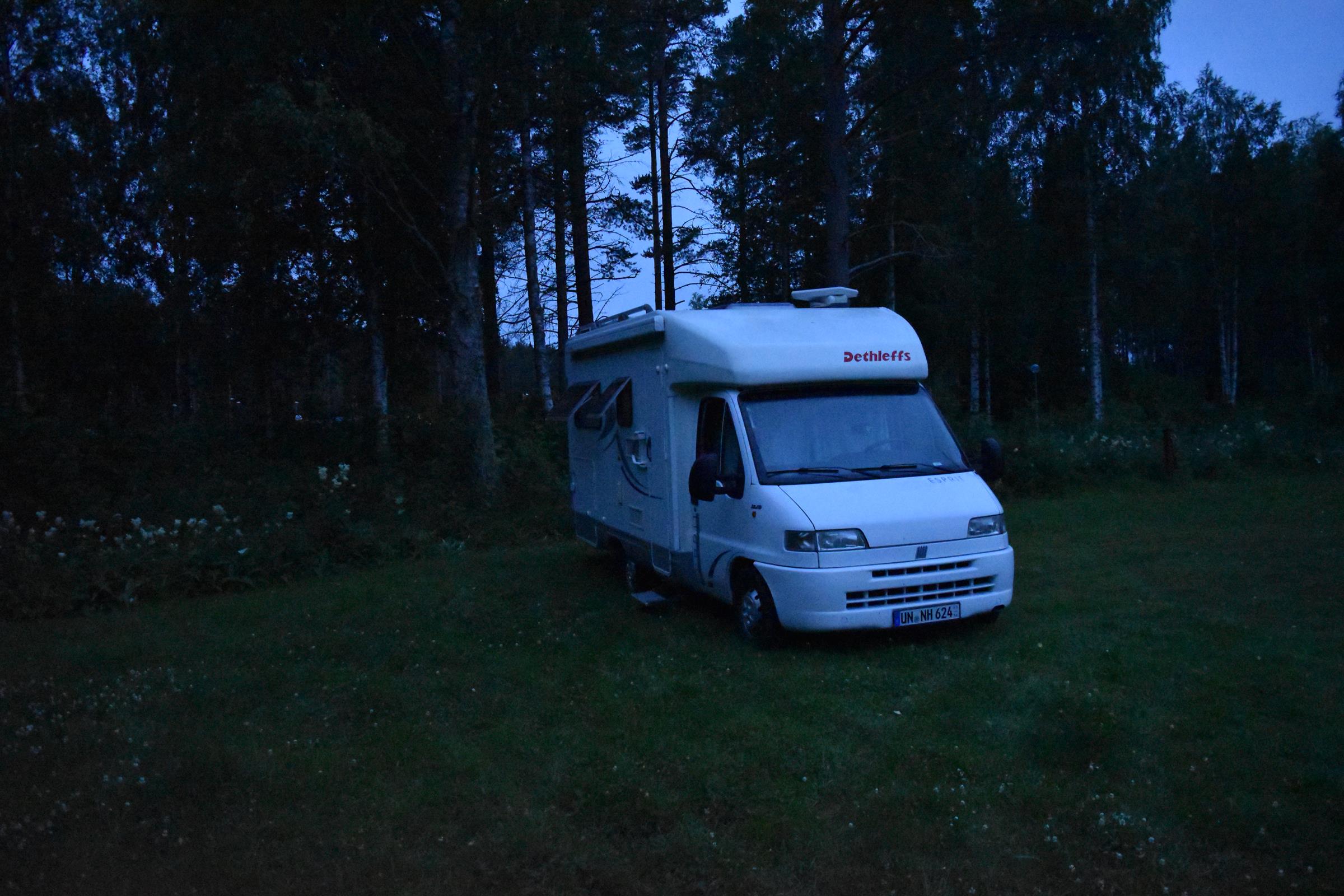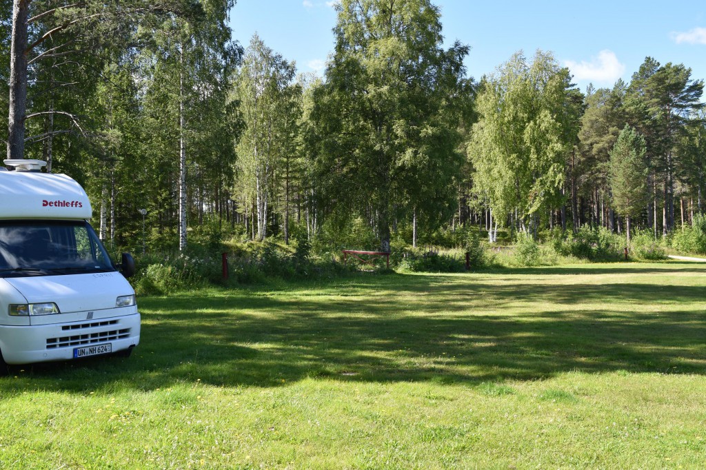 Heute Morgen bin ich wieder zu einer für mich normalen Uhrzeit von etwa halb zehn aufgestanden. Warum sollte ich auch früher aufstehen? Ich fahre nie extrem weit und dunkel wird es abends ja auch nicht… Dann habe ich ganz in Ruhe gefrühstückt und mich danach noch etwas meinem Reisejournal gewidmet. Was das ist? Ich halte jeden meiner Stopps in einem schönen Notizbuch (Danke Karin!) fest und notiere mir dabei immer meine aktuellen Koordinaten und den aktuellen Kilometerstand, sodass ich im Nachhinein ganz problemlos meine Fotos grob einordnen kann und später einmal auch noch die Namen der Campingplätze und Gegenden kenne, die ich im Laufe dieser drei Monate so besuche. Damit habe ich mich also eine ganze Weile beschäftigt und danach habe ich noch versucht meinen längsten Aufenthalt des gesamten Urlaubes, meine Zeit in Glaskogen, fest zu machen. Da ging aber niemand ans Telefon und ich werde es morgen nochmal versuchen.