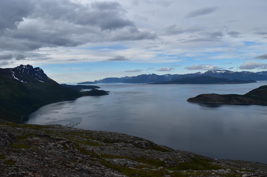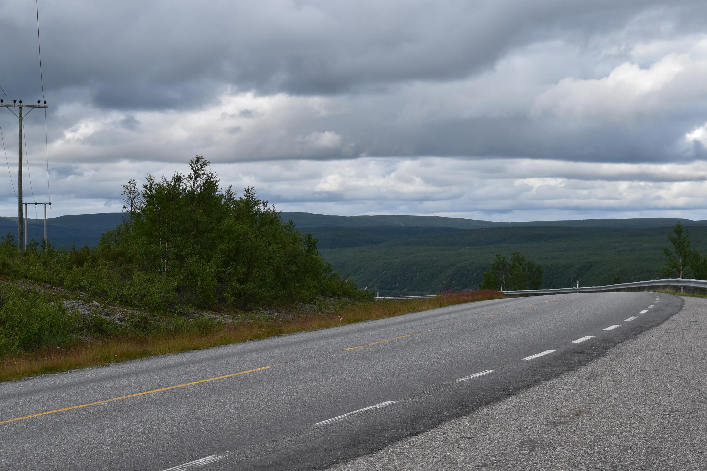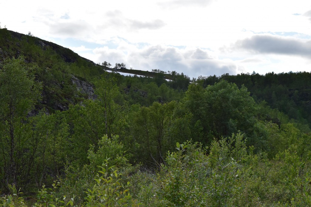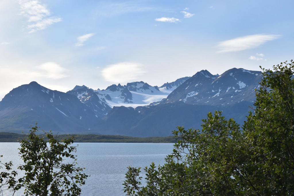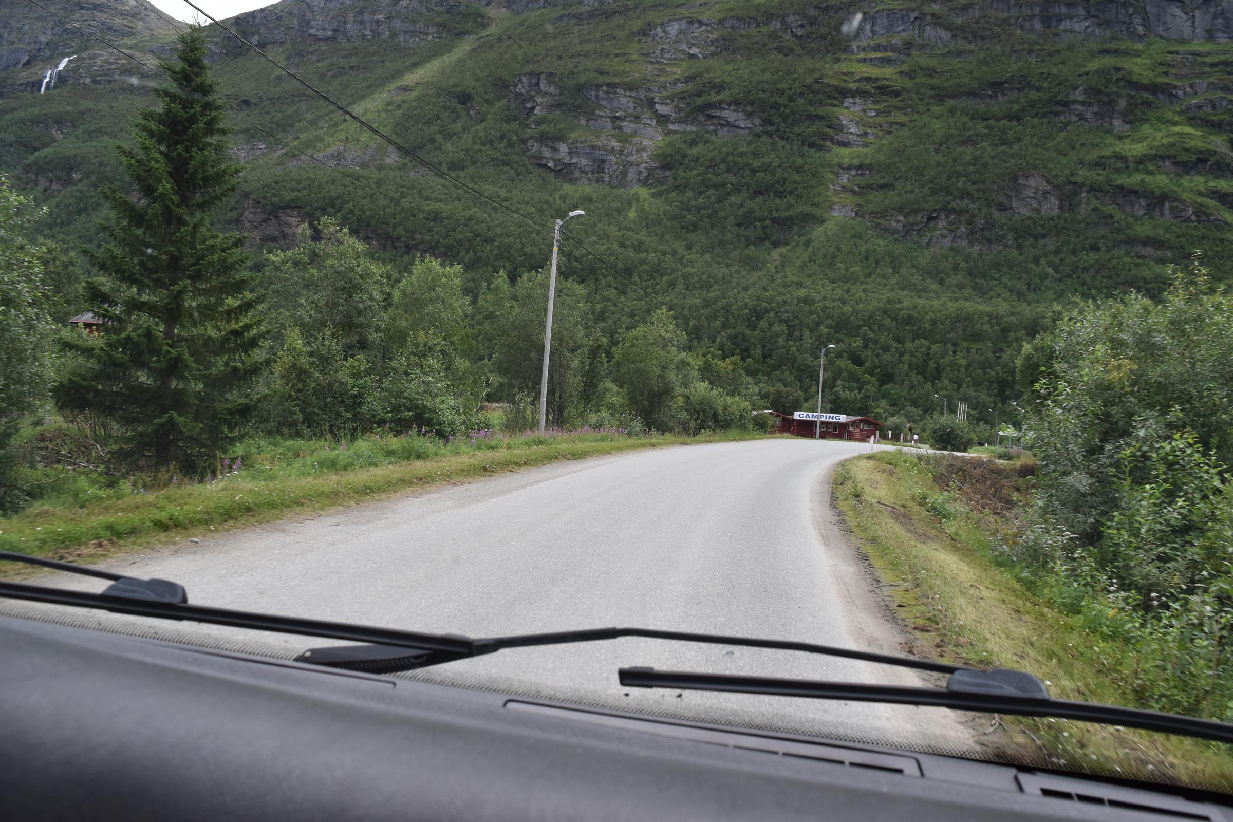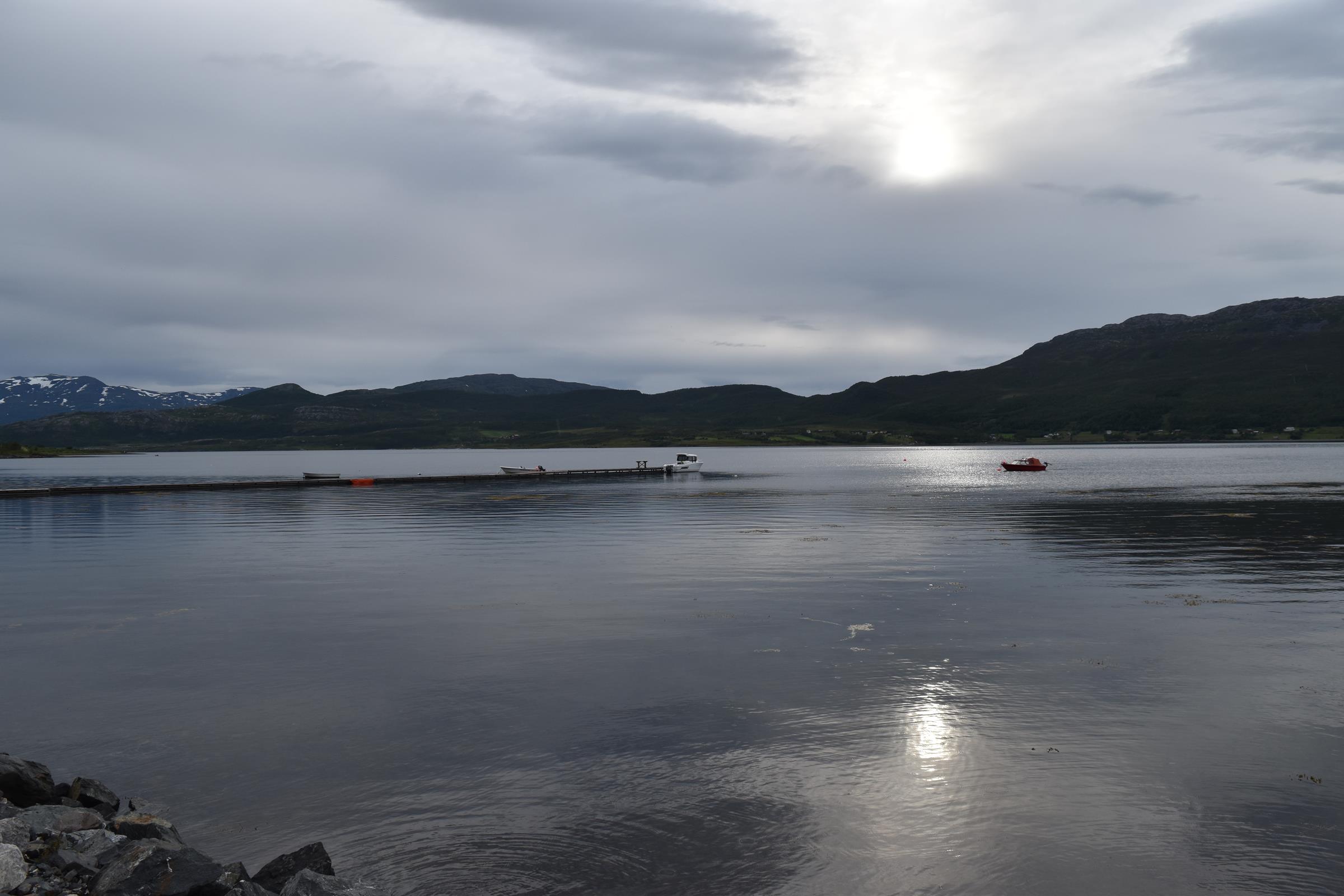 Und so war es nach einem fast 60-minütigen Telefonat mit Mama (man kann ja doch eine Menge erzählen…) auch schon halb drei bis ich überhaupt vom Campingplatz fuhr und mich auf den Weg entlang der Fjordküste weiter in Richtung Südwesten begab. Auf der E6, welche die Hauptverkehrsstraße in Richtung Nordkap und russische Grenze ist, blieb ich dann für etwa 100km bis mir die Gegend ganz gut gefiel und ich mich entschloss für die Nacht zu bleiben.