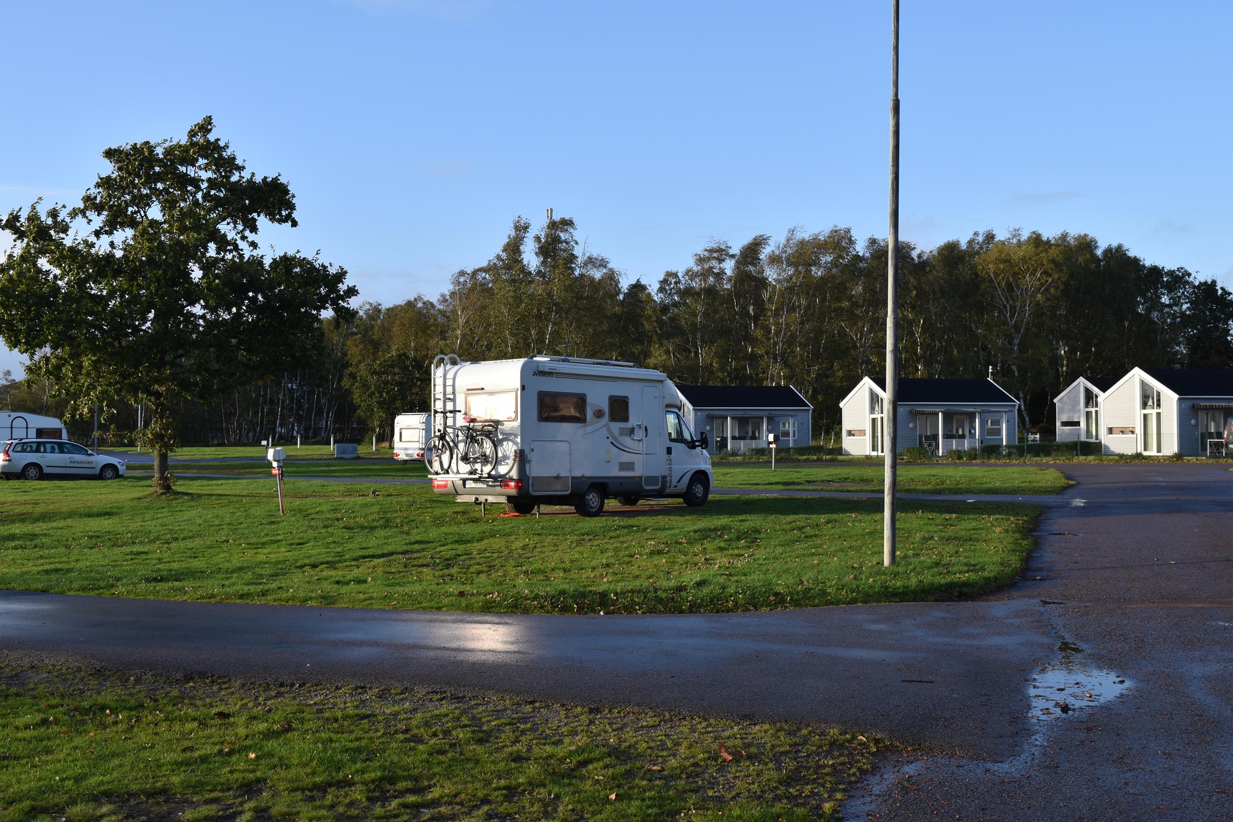 Ich hoffte auf etwas besseres Wetter für die Überquerung der Öresundbrücke als Starkregen und kräftige Böen. Da aber keine Besserung in Sicht war machte ich mich in der Nachmittagszeit auf den Weg nach Dänemark. Die Gebühr war wieder genauso hoch wie auf der Hinreise und dann ging es auf die Brücke. Wäre der Wind nur ein wenig stärker gewesen hätte ich wahrscheinlich am Straßenrand anhalten müssen. Um ganz ehrlich zu sein: es war keine sonderlich gute Idee bei so viel Wind über die Brücke zu fahren. Trotzdem hat alles schlussendlich gut geklappt und ich bin heil übergekommen. Ich war froh zur frühen Abendzeit am Campingplatz zu sein und mich Ausruhen zu können. Puh…