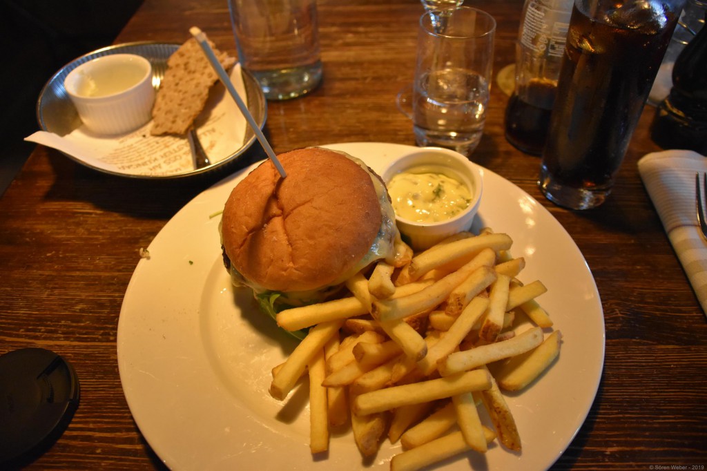 Mariefred ist eine schöne kleine Stadt am Mälarensee etwa 70km von Stockholm entfernt. Hier steht unter anderem eines der elf königlichen Schlösser, Gripsholm. Und hier findet man die älteste Gaststätte in Schweden, das Gripsholms Värdshus. Hier kann man sehr gut essen und so entschied ich mich nach einem ansonsten sehr ruhigen Tag noch hier essen zu gehen. Ich kann mich noch sehr gut daran erinnern, als ich vor zwei Jahren das letzte Mal hier gegessen habe – Burger mit Süßkartoffelpommes und Trüffelmayo. Das beste hieran war erstaunlicherweise die Mayonnaise. Entsprechend groß war dann die Enttäuschung als ich herausfand, dass es den Burger zwar noch gibt, aber sich die Beilagen geändert haben. Mittlerweile gibt es dazu normale Pommes mit einer hausgemachten Sauce Bearnaise. Und das Ganze war ja noch nichtmal schlecht – der Burger war gut und die Pommes schmeckten auch gut mit der Soße. Aber es war eben leider nicht mehr so gut wie es früher einmal war, schade…