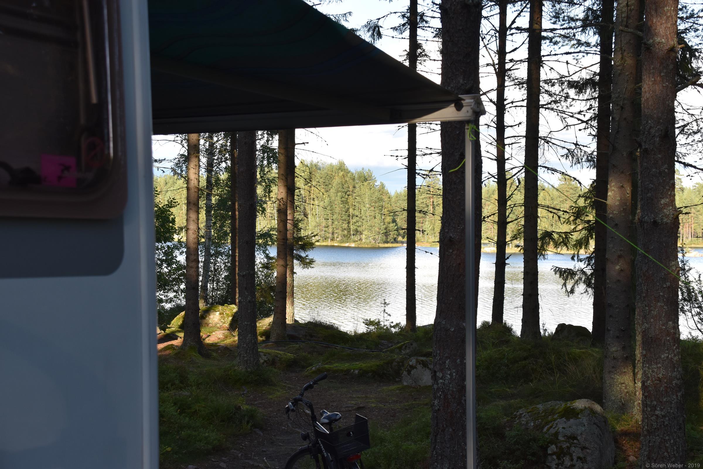 Ich bin seit dem letzten Eintrag in Glaskogen an meinem Lieblingscampingplatz und genieße die Natur und die relative Ruhe. Auf dem Weg zum Campingplatz hatte ich noch einen Großeinkauf gemacht und kam dann am 02.09. hier an. Leider war mein absoluter Lieblingsplatz nicht für die Dauer meines Aufenthaltes frei und so nahm ich einen anderen Platz, der eine etwas bessere Aussicht hat. Das Aufbauen ging relativ schnell und so war dann alles fertig für einige schöne Tage an diesem herrlichen Fleck Erde.