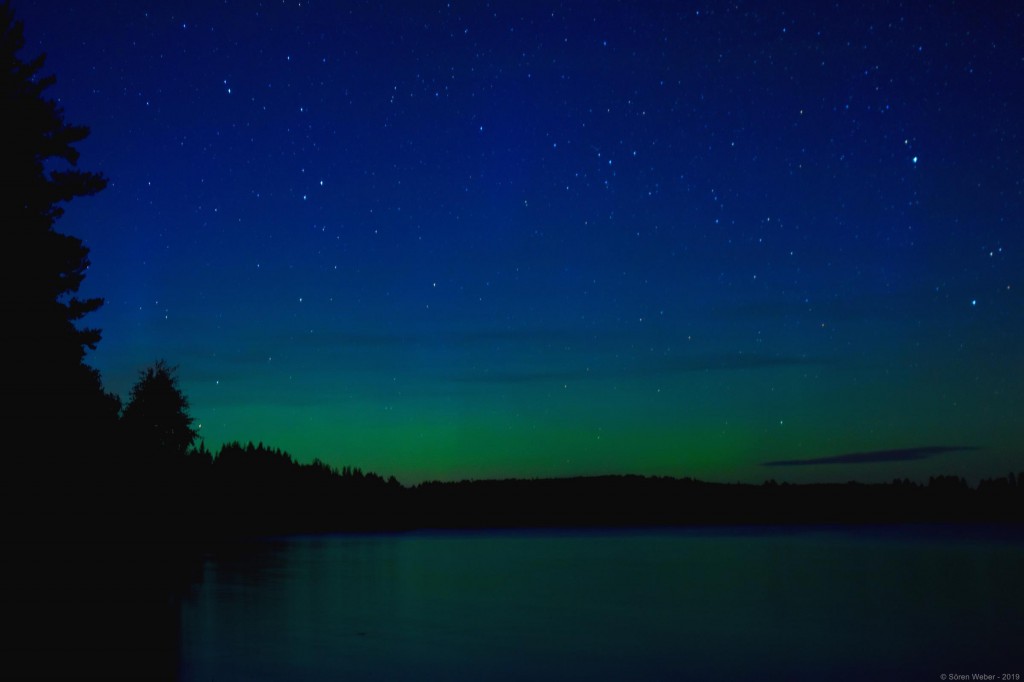 Die ersten paar Tage hat es jedoch relativ viel geregnet und somit verbrachte ich einen Großteil der Zeit im Wohnmobil, weil es sehr unangenehm ist Klamotten im Wohnmobil trocknen zu müssen. An den drei Regentagen habe ich dann dementsprechend wenig gemacht und habe die Zeit mit Lesen und Serienschauen verbracht. Am ersten Abend war jedoch der Himmel sehr klar, sodass ich einige sehr schöne Aufnahmen von den Sternen machen konnte. Außerdem hatte ich großes Glück und konnte zum ersten Mal hier in Glaskogen die Nordlichter festhalten. Dazu muss ich aber auch sagen, dass man die Nordlichter nicht mit bloßem Auge sehen konnte. Lediglich die Kamera konnte das Himmelsschauspiel aufzeigen. Alle restlichen Nächte bisher waren leider zu bewölkt, um die Sterne vernünftig fotografieren zu können.