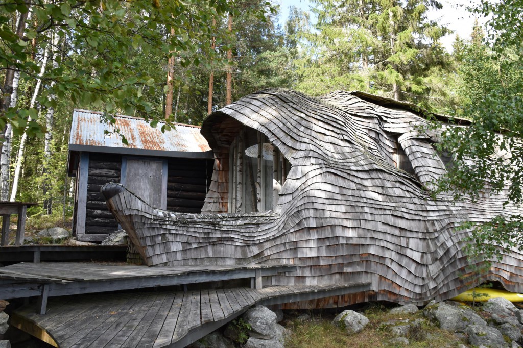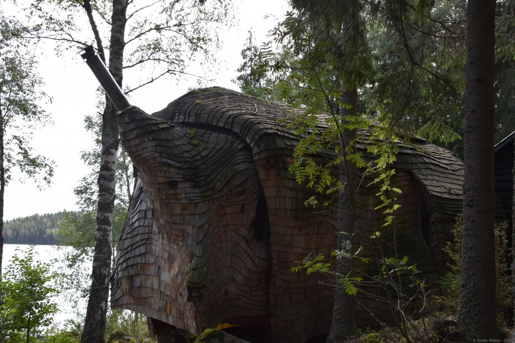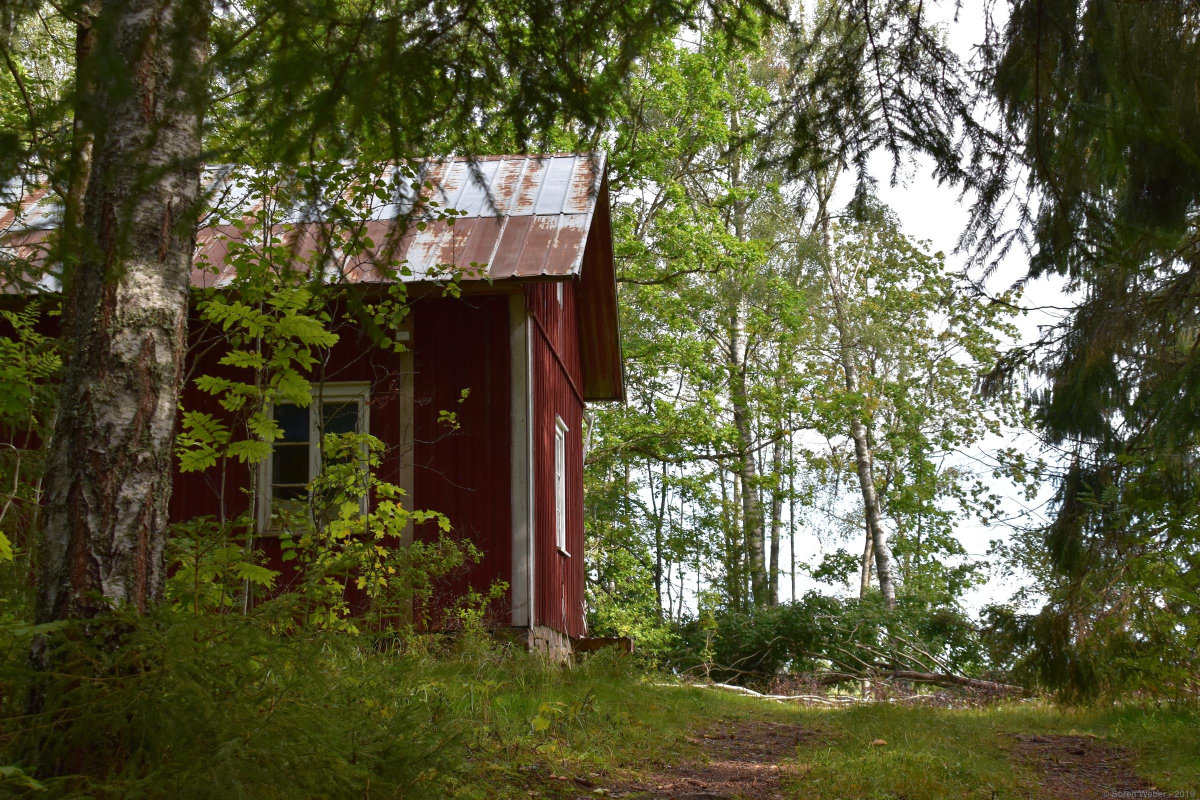 Trotzdem kam ich mit trockenen Füßen an meinem Ziel an und konnte mir dort das außergewöhnliche Häuschen mal aus der Nähe anschauen. Dem Äußeren zur Folge war jedoch schon länger niemand mehr dort, was sich dann durch die mit Brettern abgeschotteten Fenster bestätigte. Die Form des Häuschens war dennoch sehr interessant und auch die kleineren „Nebengebäude“ boten einen schönen Anblick. Zwar alles lange nicht mehr so gepflegt wie auf den Bildern, aber dennoch ein lohnendes Ziel.