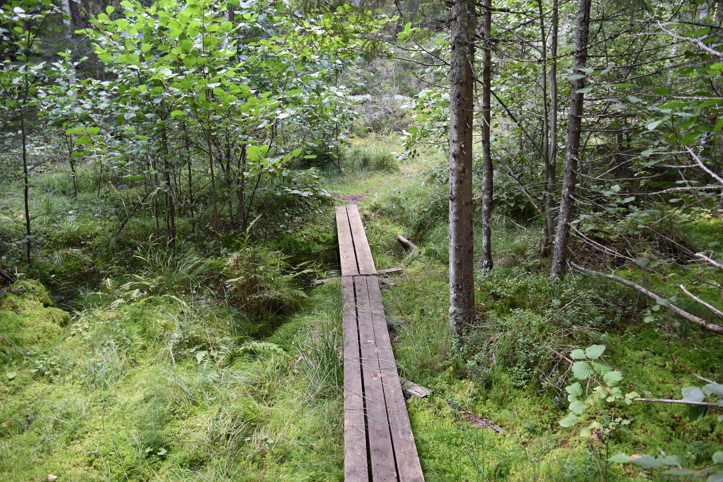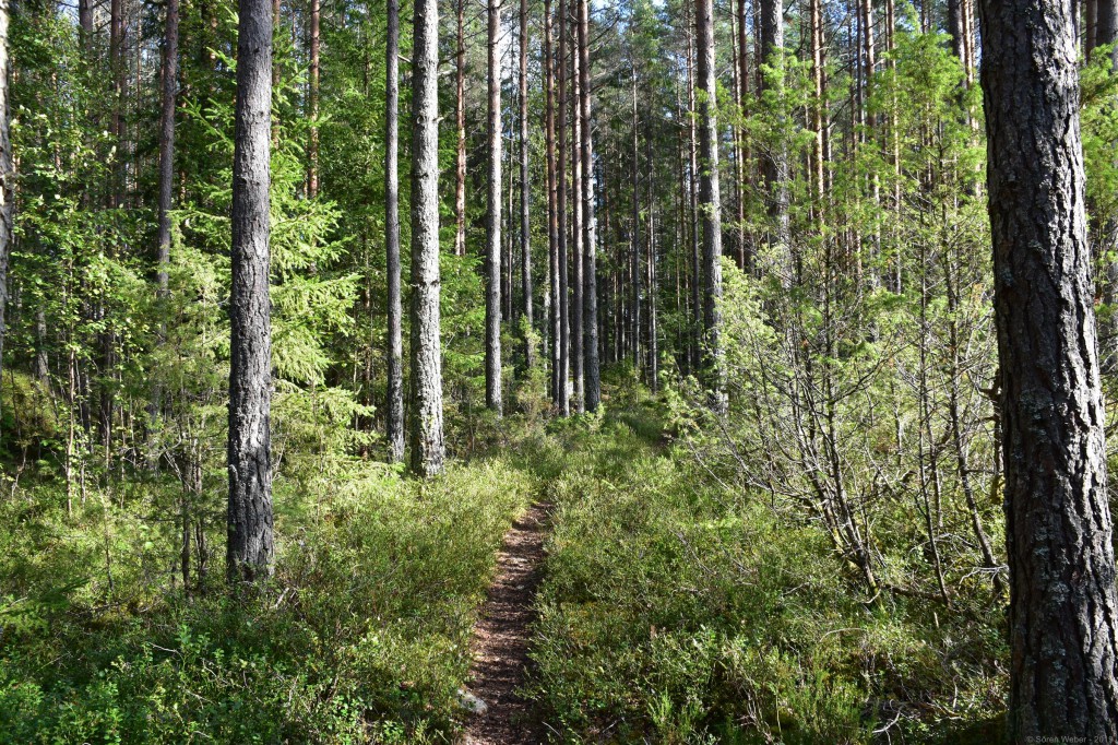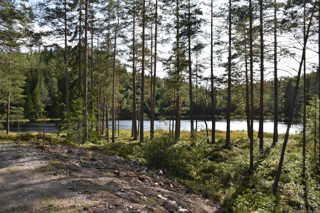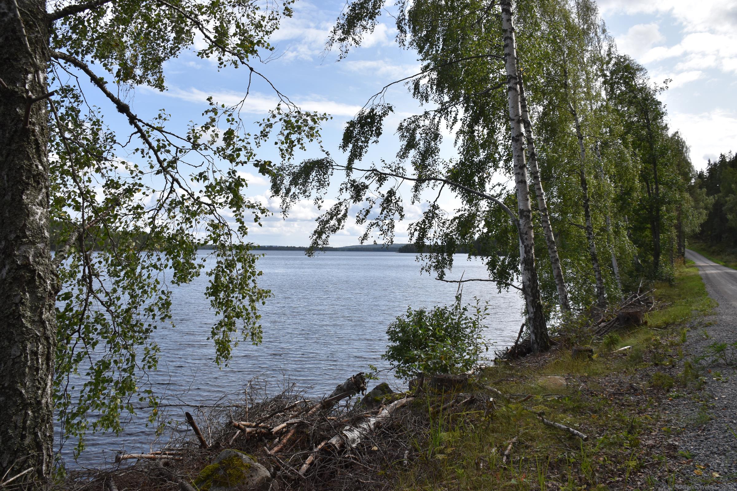 Als sich dann gestern wieder besseres Wetter zeigte ging ich auf eine Wanderung um einen der nahe gelegenen Seen. Dabei hatte ich sogar ein genaues Ziel vor Augen. Ich habe vor dem Urlaub aus Neugier mal geschaut was es in dieser Gegend so für Immobilien zu verkaufen gibt und sah ein sehr interessantes Ferienhaus, das ich mir dann mal näher anschauen wollte. Und so führte mich meine Wanderung durch 7,7km wunderschöne Natur bei bestem Wanderwetter: 15 Grad Celsius und Sonne, herrlich! Es war auf der Wanderung sehr gut zu sehen, dass es die letzten Tage relativ viel geregnet hatte, da manche Teile des Weges komplett unter Wasser standen und jede größere Pfütze ein neues kleines Abenteuer darstellte.